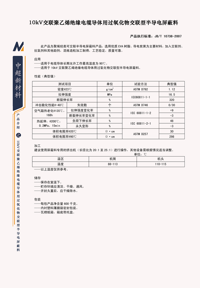 10kV交联聚乙烯绝缘电缆导体用过氧化物交联型半导电屏蔽料